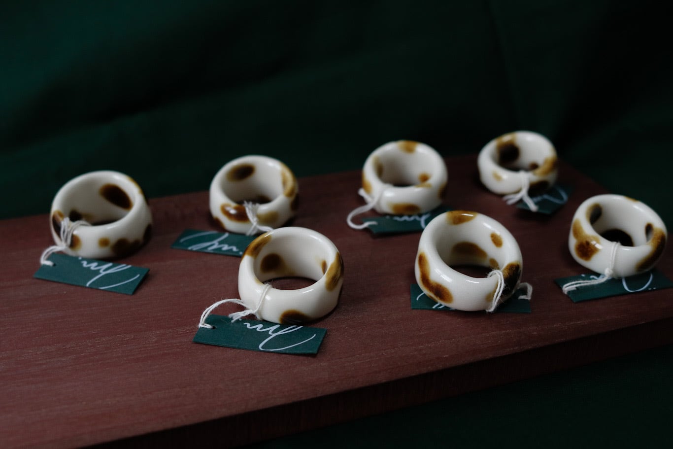 ※陶器リング作品の内側には制作上必ず釉薬のついていない素地の部分ができますが、不良ではございません。
