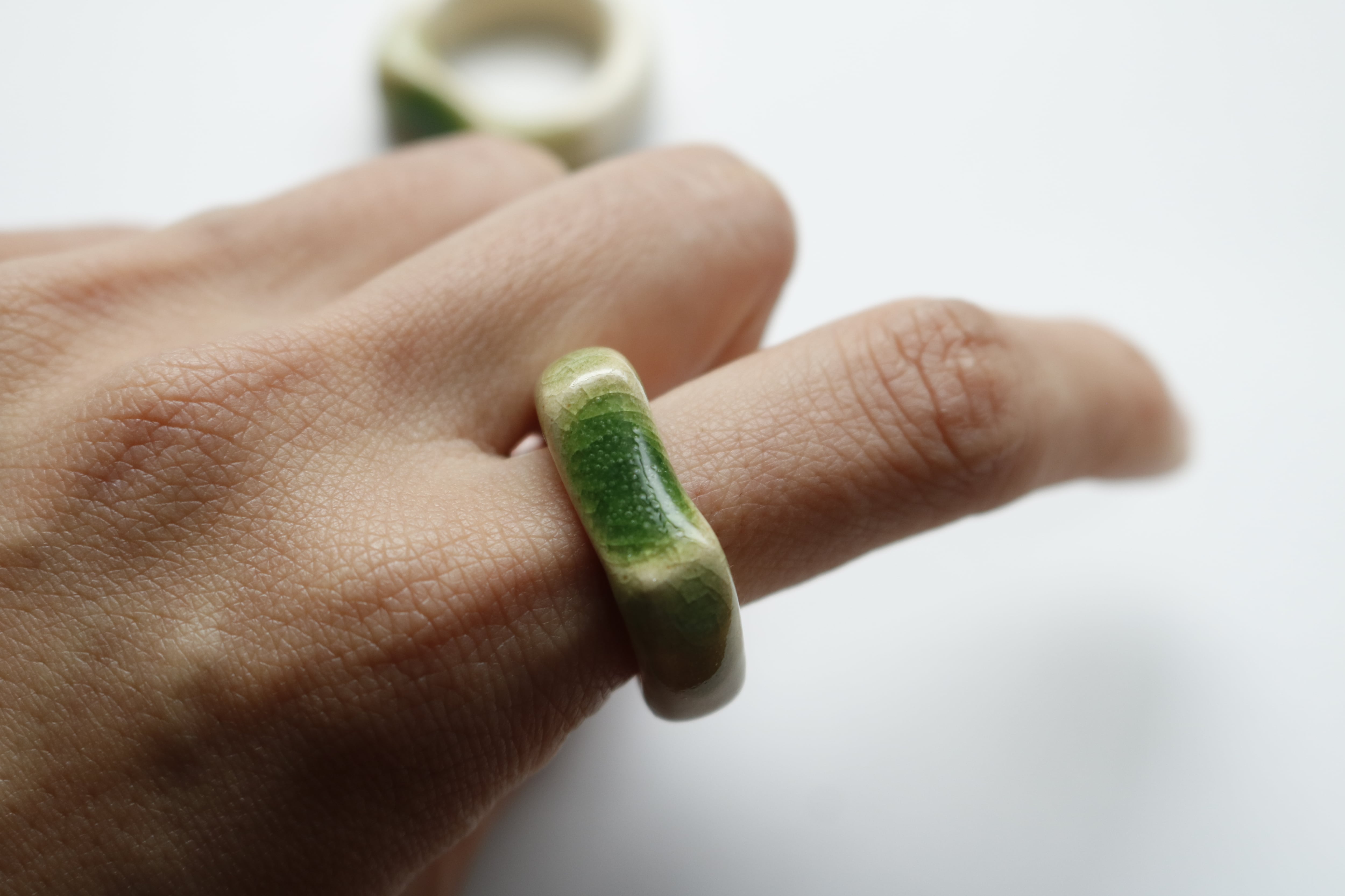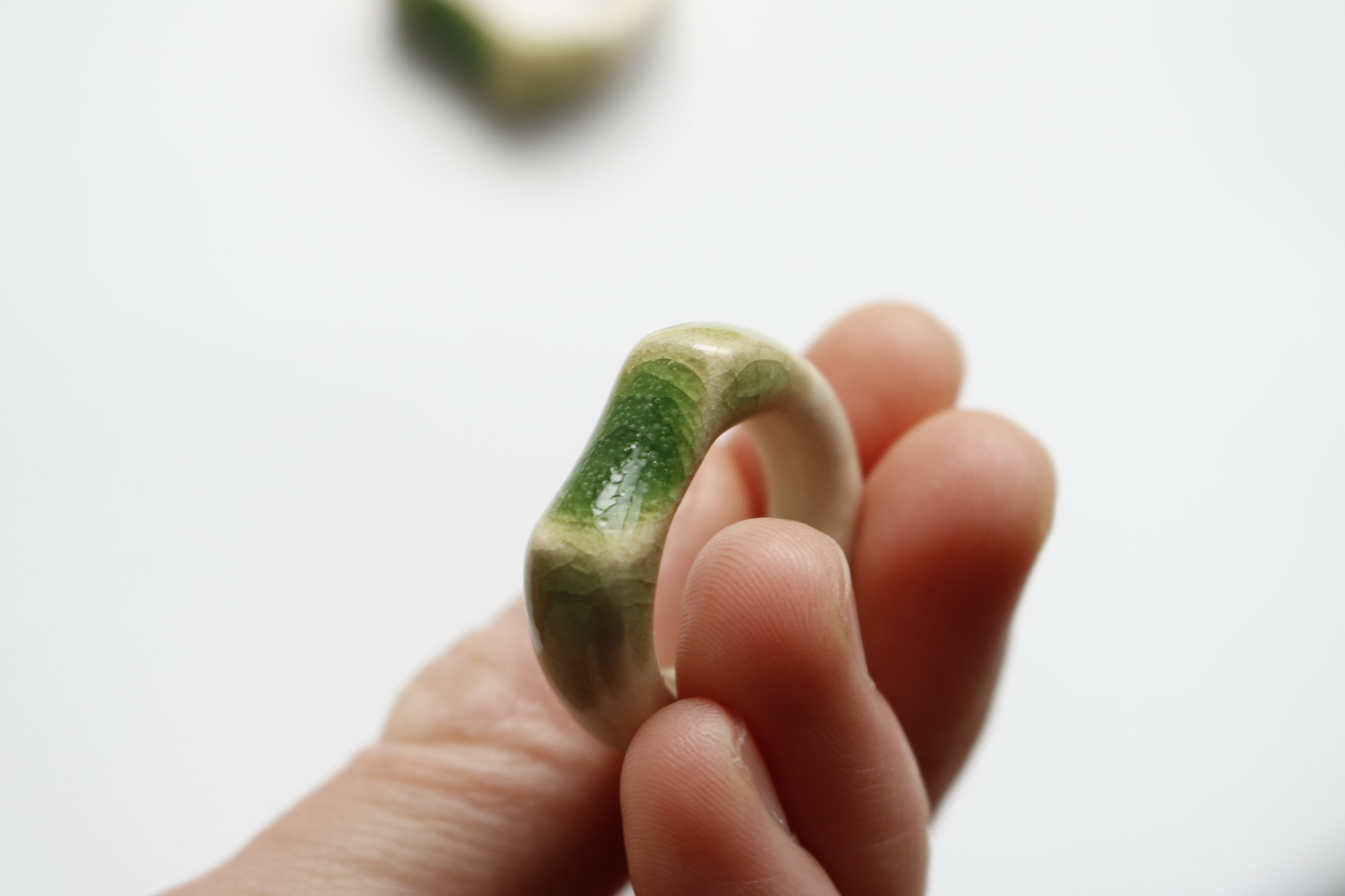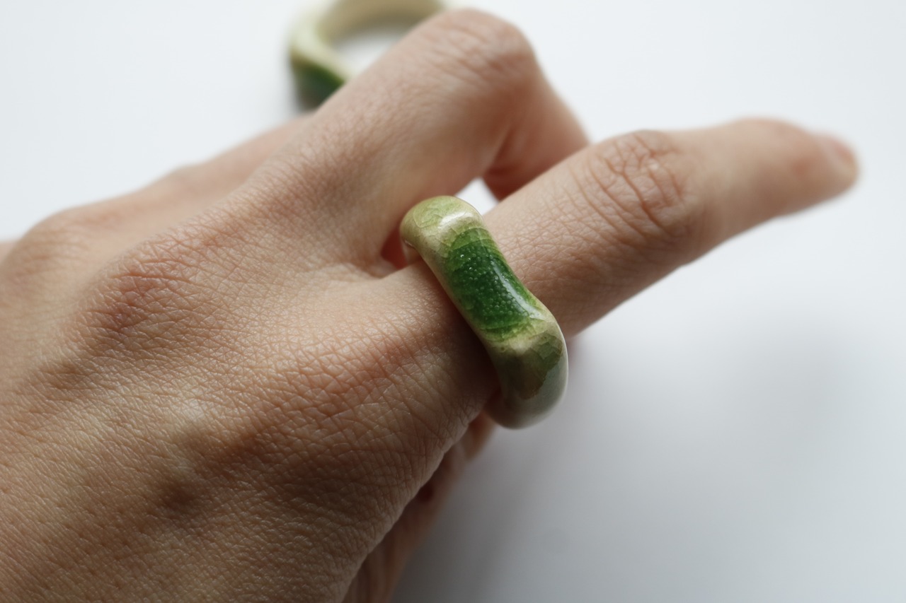 ※陶器リング作品の内側には制作上必ず釉薬のついていない素地の部分ができますが、不良ではございません。